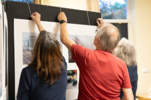 De tentoonstelling werd op vrijdag 12 mei ingericht met veel leden van de Fotogroep. Opvallend veel nieuwe leden die de handen uit de mouwen staken. Waardoor er al veel klaar was op vrijdagavond.